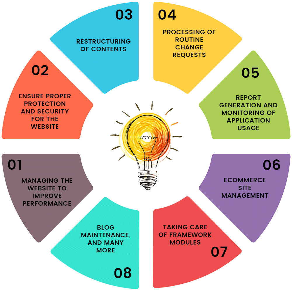 Website maintenance encompasses the following services: Updates on websites like modification, deletion, and the addition of website content and pages, replacement of pictures, maintenance of email lists, uploading and pdf creation, etc.